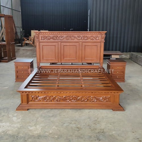 Dengan ukuran 180 x 200 cm, tempat tidur ini menawarkan kenyamanan maksimal untuk waktu istirahat yang berkualitas. Struktur kokoh dari kayu jati memastikan kekuatan dan daya tahan bertahun-tahun, menjadikannya investasi jangka panjang yang bernilai tinggi.